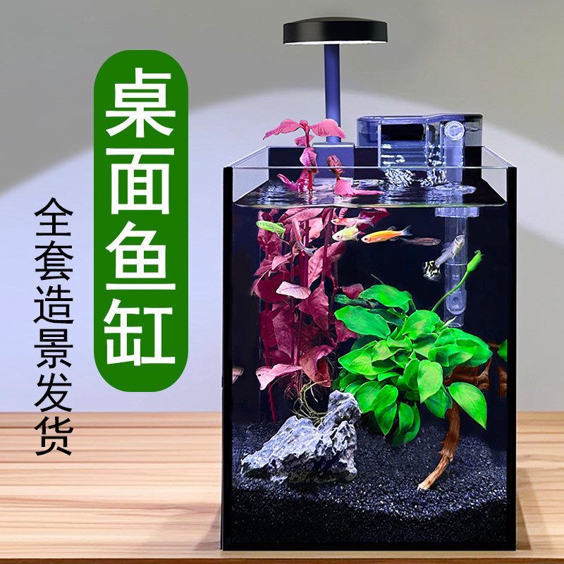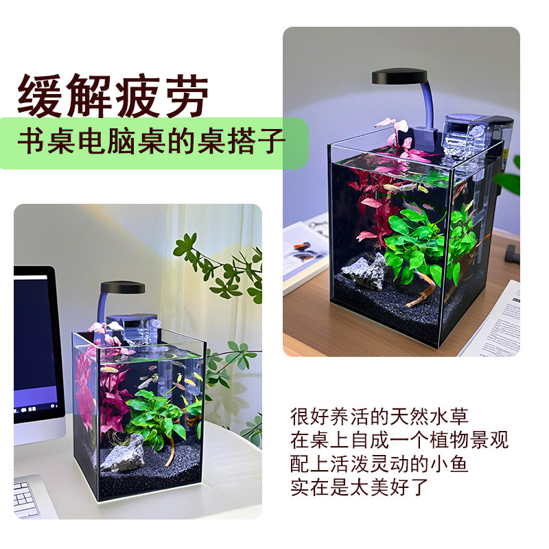 淘宝桌面鱼缸小型客厅斗鱼鱼缸过滤制氧一体机生态水草植物造景玻璃缸