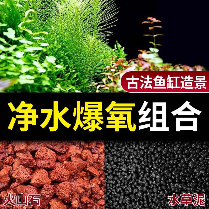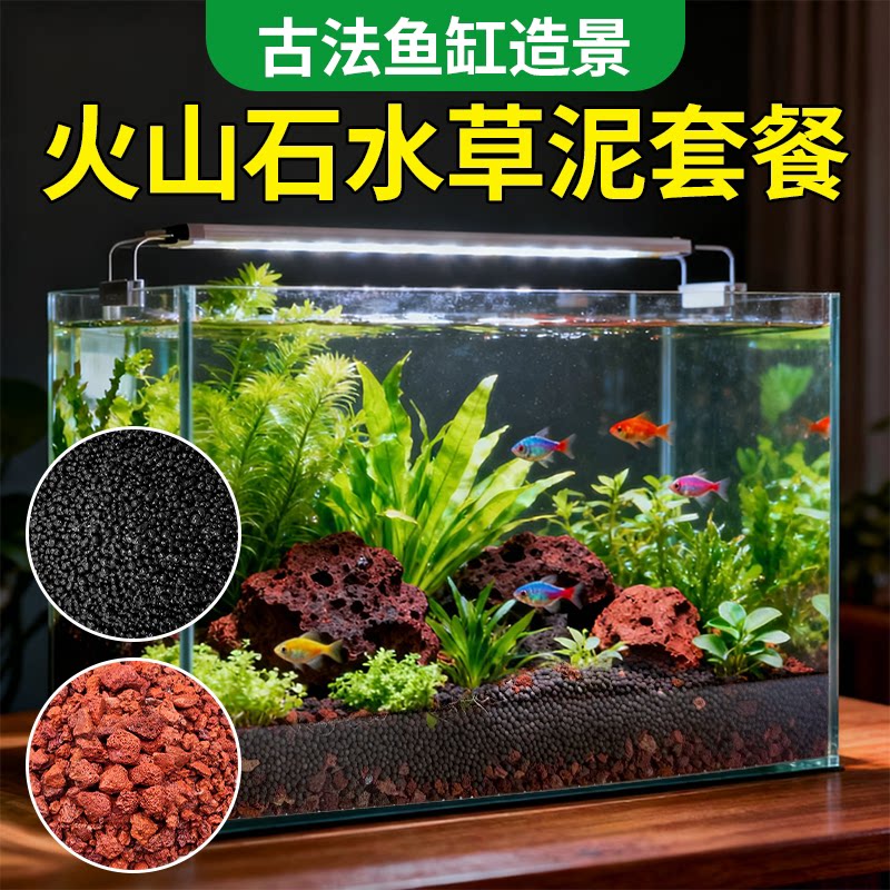 淘宝鱼缸造景底砂原生态火山石免洗水草泥古法鱼缸过滤石造景铺底专用
