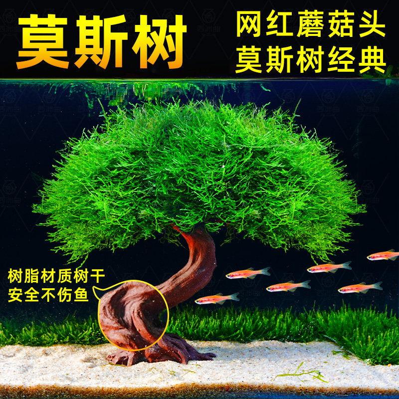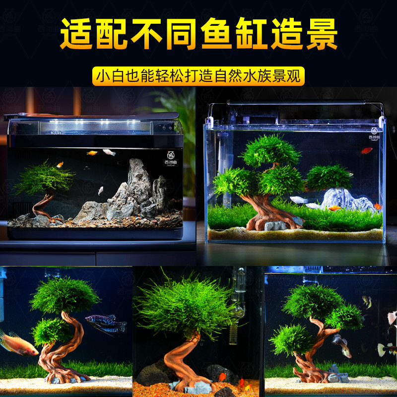 天猫成品莫斯树活体真水草鱼缸装饰摆件造景大三角莫斯沉木新手好养