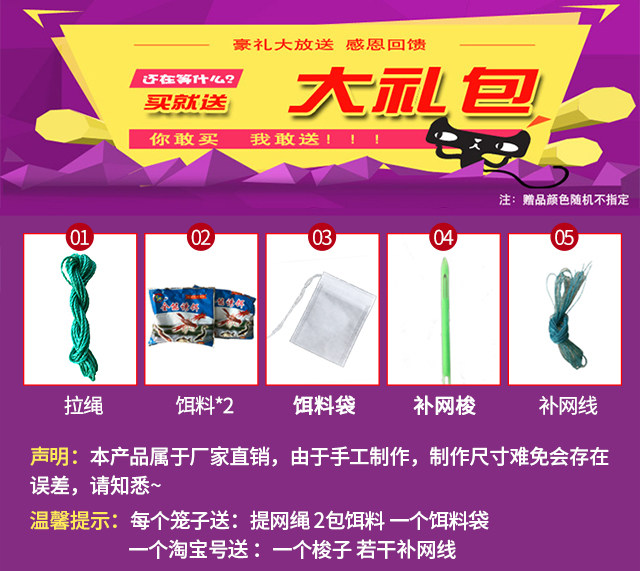 淘宝虾笼渔网龙虾网2.5-18米捕鱼笼鱼网捕虾笼自动折叠螃蟹泥鳅黄鳝笼
