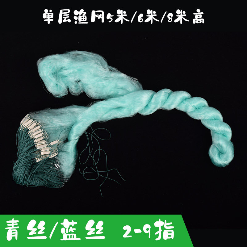 淘宝单层粘网捕鱼网5米6米8米高青丝蓝丝白丝网2.5指3指4指4.5指5指6