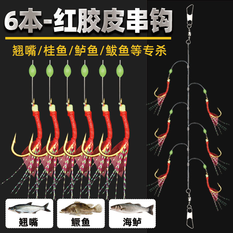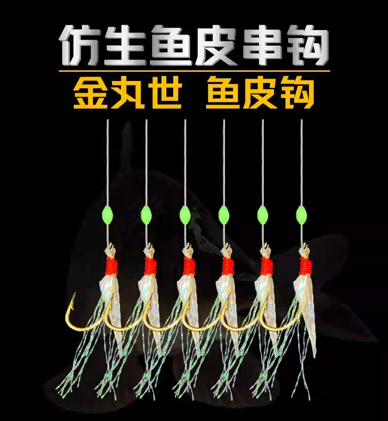 淘宝特价鱼皮串钩白条钩真鱼皮仿生夜光虾皮翘嘴路亚海钓成品鲅鱼黄鸡