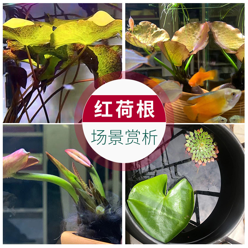 天猫红荷根水草造景水族箱中后景易养睡莲阴性植物懒人淡水真活体碗莲