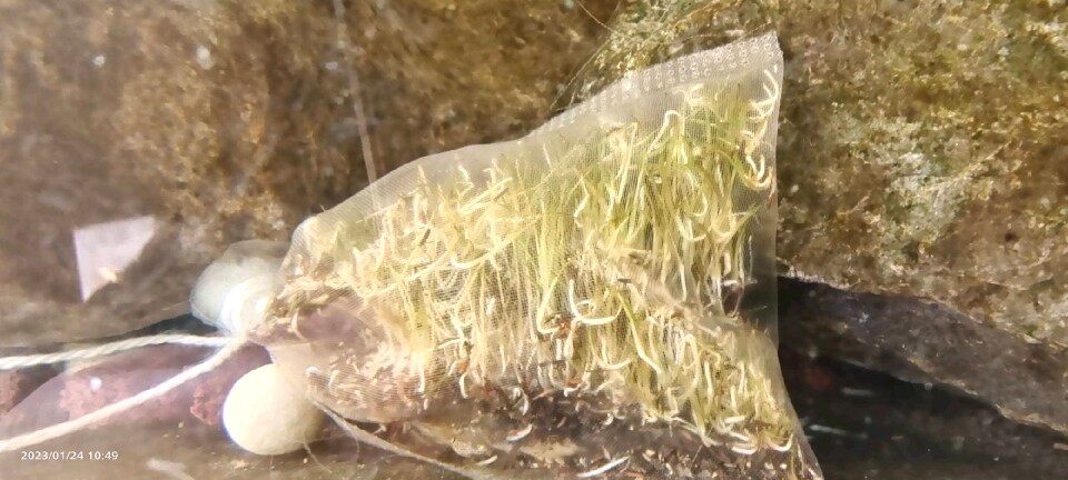 苦草(又称扁担草、淡水韭菜)是一种优质的沉水植物,其种籽可用于虾、蟹、鱼类养殖池塘的生态构建。该水草根系发达,生长迅速,能有效吸收水体中的氮、磷等富营养化物质,显著净化水质,抑制藻类过度繁殖,为水生动物提供优良的栖息环境和天然饵料。苦草耐低温、适应性强,四季常绿,在淡水池塘中种植后可形成稳定水草群落,提升水体溶氧,改善底质,降低病害风险。同时,其嫩叶可供虾蟹摄食,促进生长,是集水质净化、生态调控与养殖增效于一体的优良水草品种,广泛应用于生态水产养殖系统中。