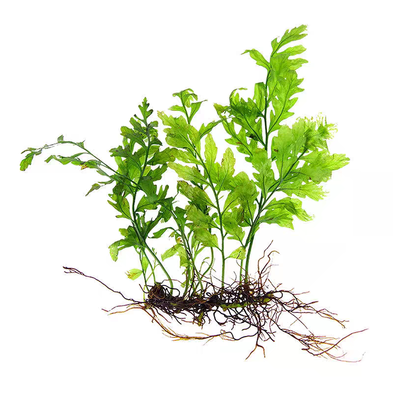 黑木蕨(Bolbitis heudelotii)矮种是极受欢迎的阴性水草,特别适合新手和“懒人”玩家。它无需二氧化碳添加,在弱光至中等光照下即可健康生长,适应性强,入缸即活,极大降低养护难度。作为淡水水草,黑木蕨喜软水、弱酸环境,可绑于沉木或岩石上造景,营造自然雨林风格。其叶片细长、质地坚韧,呈深绿色,生长缓慢,不易爆缸,维护省心。矮种形态更紧凑,适合中小型草缸。无需频繁修剪,对水质波动耐受度高,是打造低维护生态缸的理想选择。无论是新手入门还是高手造景,黑木蕨矮种都是百搭又省心的优质水草。