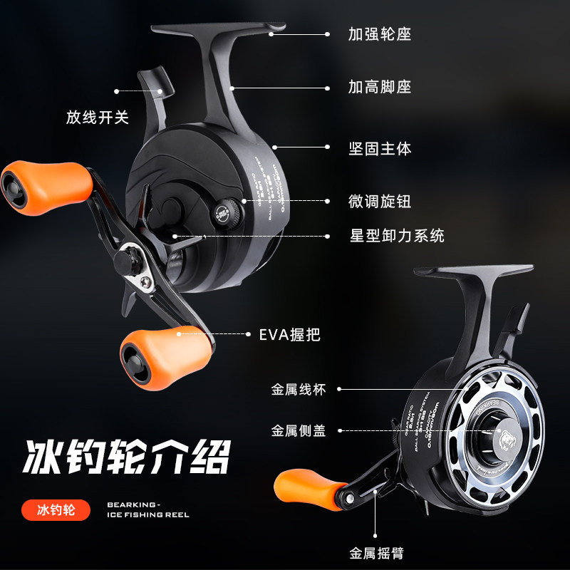 天猫熊王高脚冰钓轮鱼线轮筏钓轮磁石刹车全金属精雕线杯飞轮