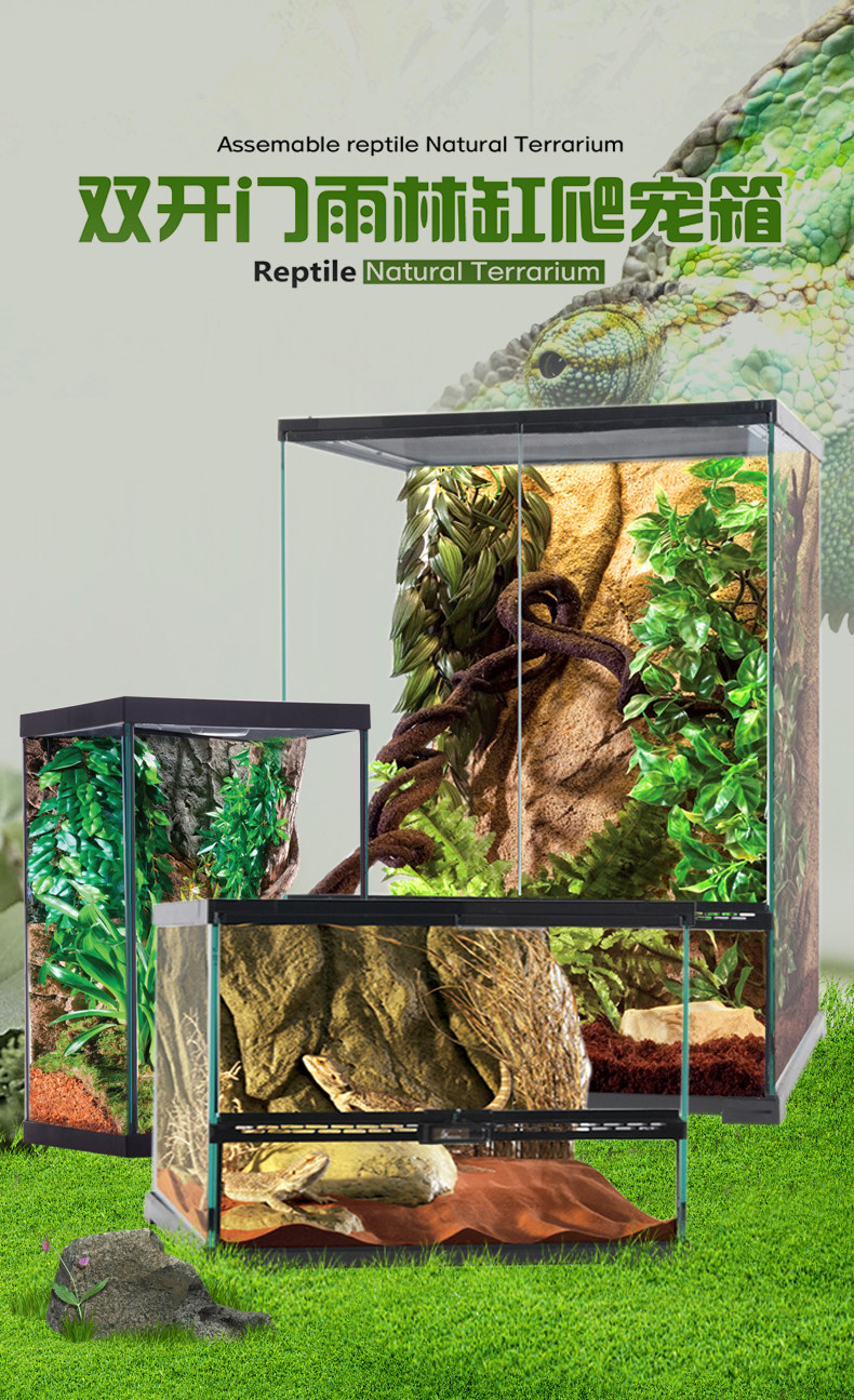 淘宝玻璃缸雨林缸爬宠饲养箱角蛙蜘蛛蜥蜴睫角守宫带盖双开门树栖爬缸