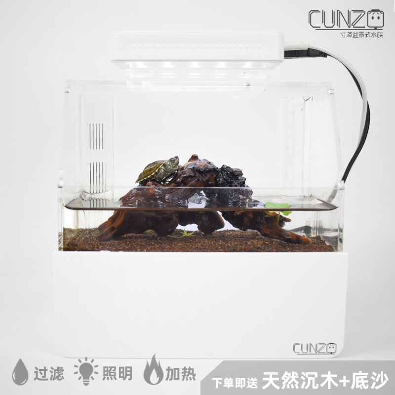 淘宝乌龟水陆缸/角蛙底滤饲养水族箱/免打理换水超白亚克力/寸泽微缸