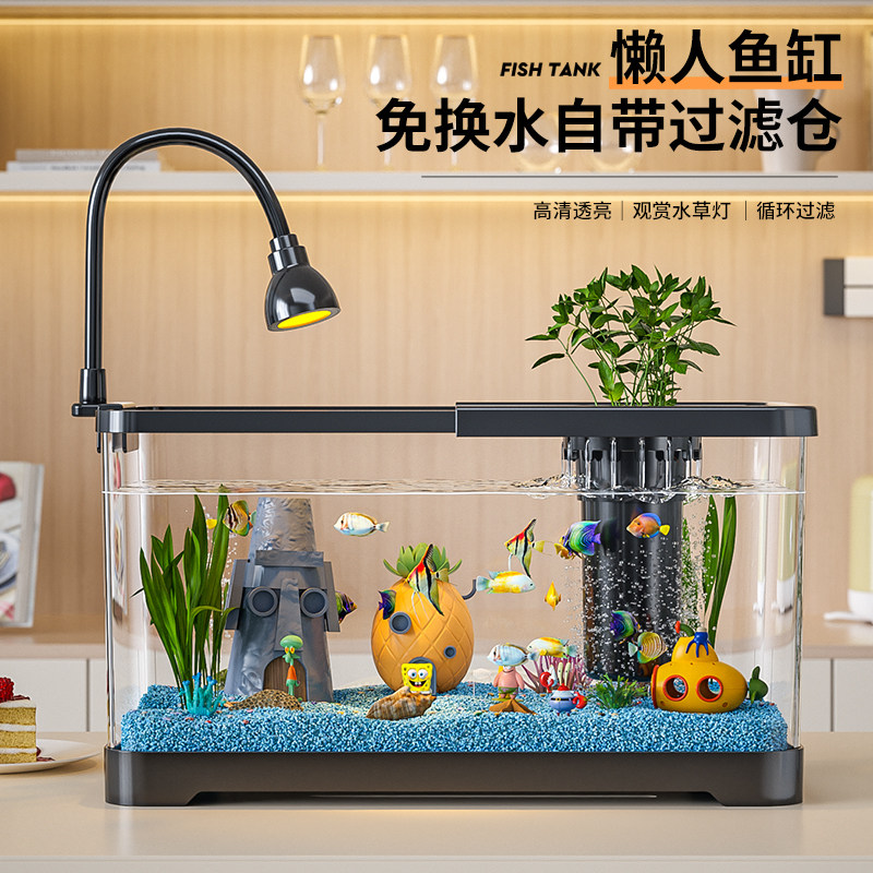 天热弯小型客厅2026桌面玻璃缸水缸生态金鱼缸家用养鱼水族箱懒人