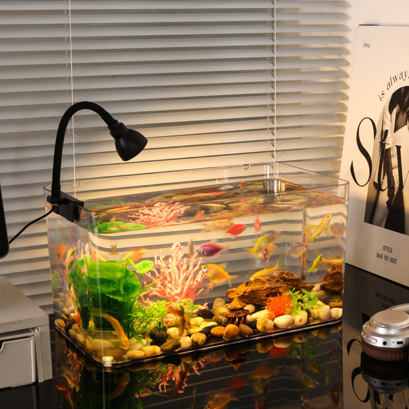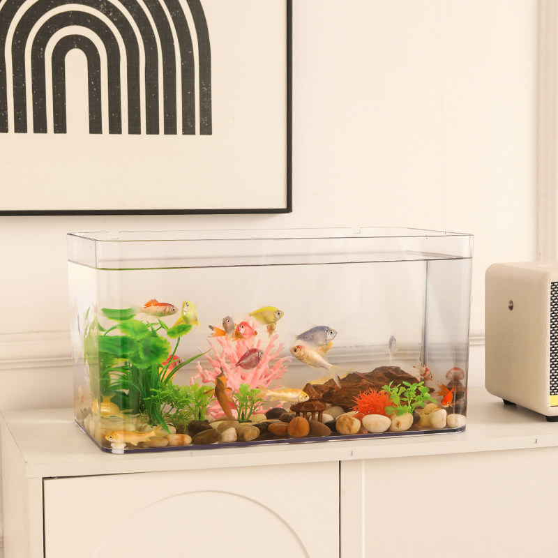 天桌面生态鱼缸AS材质透明水族箱客厅造景养鱼缸长方形小型金鱼箱