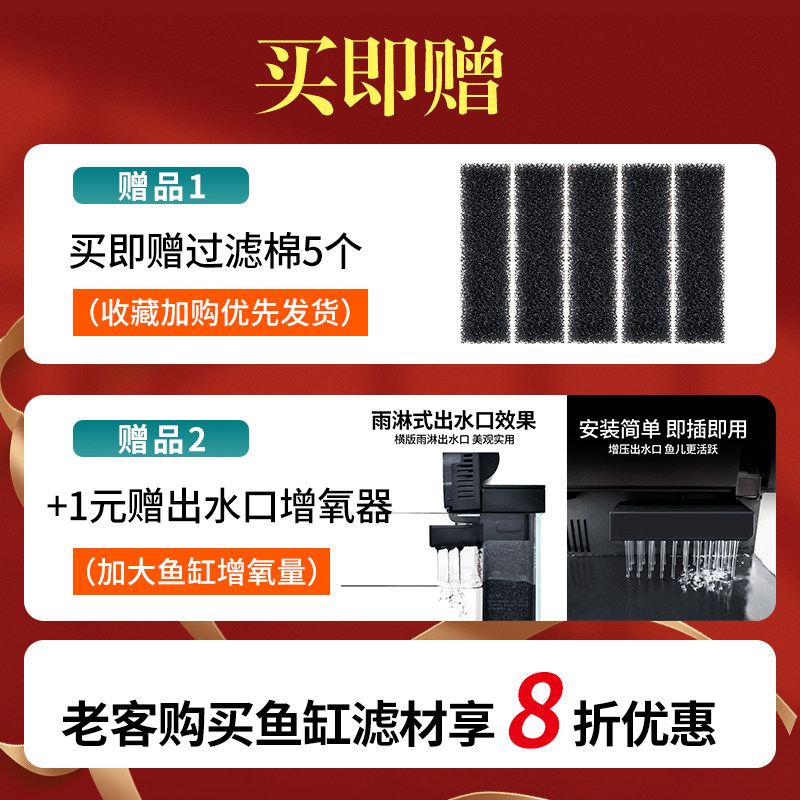 淘yee壁挂式过滤器鱼缸过滤循环水泵制氧造浪净水三合一静音鱼马桶