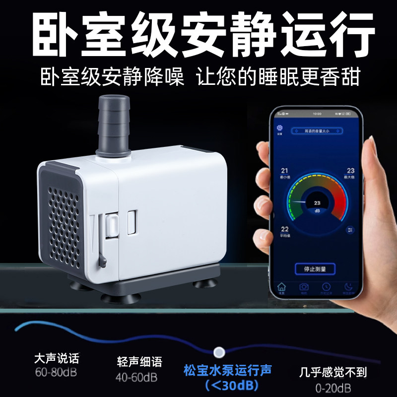 松宝超静音鱼缸大流量鱼池潜水泵循环小型抽水泵水陆两用变频水泵