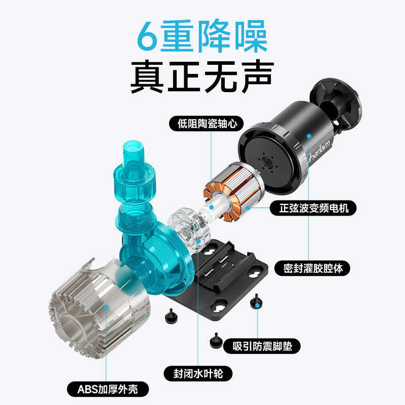 天鱼缸水泵超静音底吸变频潜水泵假山流水低压迷你龟缸抽水泵低水位