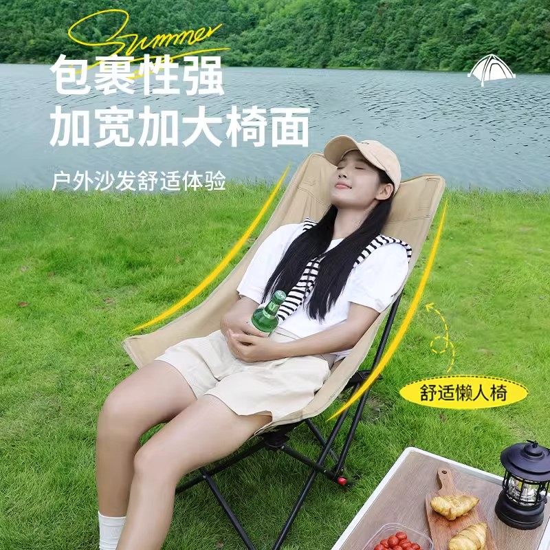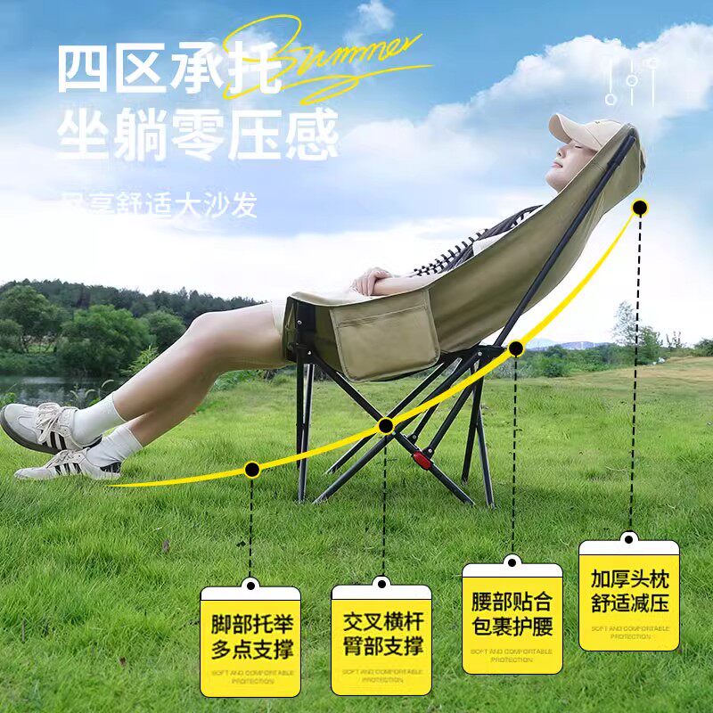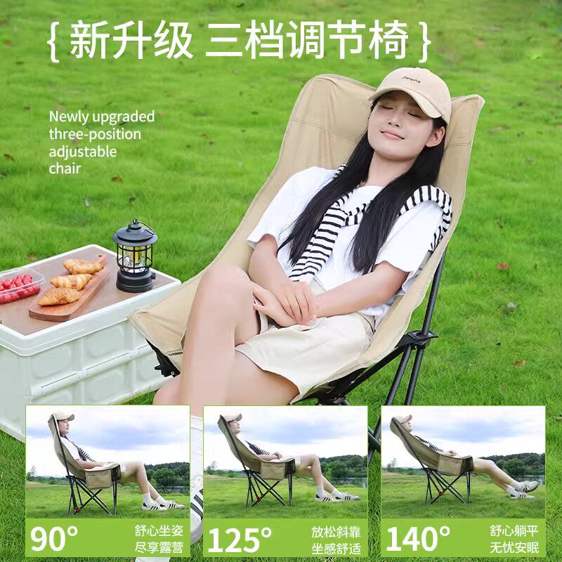 户外折叠躺椅高靠背露营椅子便携式办公室午休沙滩椅月亮椅钓鱼椅