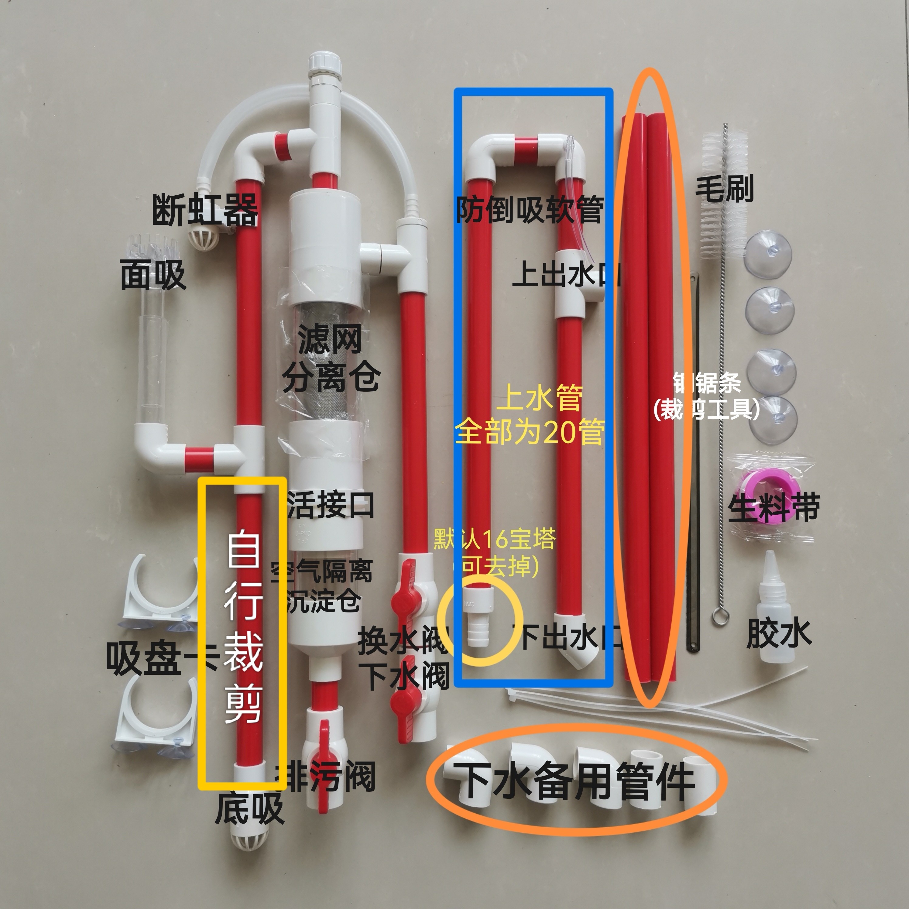 淘宝鱼缸虹吸过滤系统不打孔改底过滤虹吸管件虹吸壶鱼马桶鱼便分离器