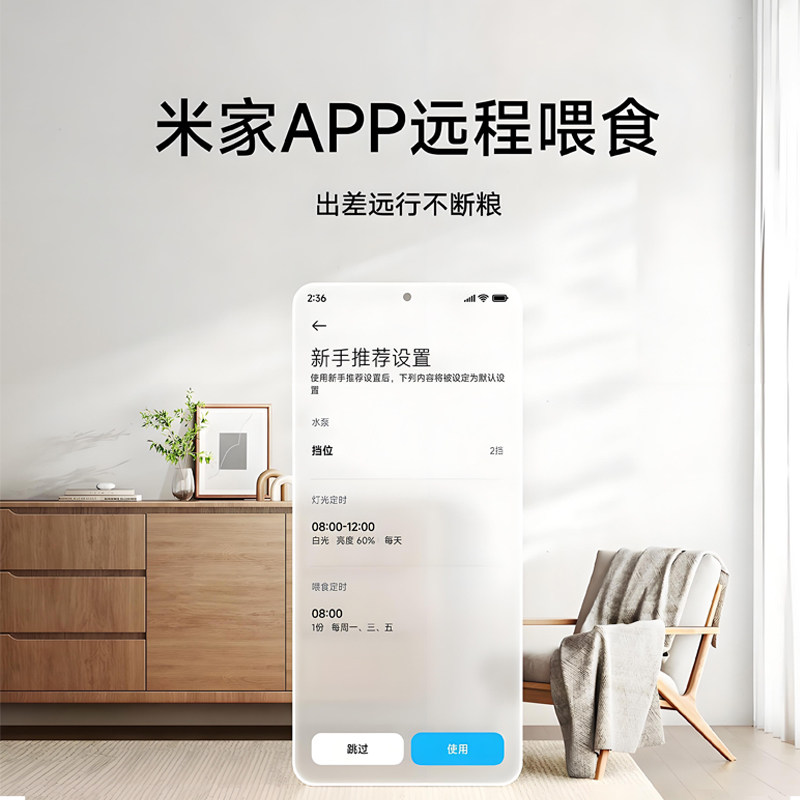 小米智能鱼缸二代(2025款)延续米家简约白色设计,专为桌面场景打造,集智能养鱼与家居美学于一体。搭载米家生态系统,支持APP远程操控,实时监测水温、水质与水位。内置高效静音过滤系统,搭配可调节出水口设计,确保水体循环流畅。配备精准恒温加热棒,适应不同鱼类需求。模块化造景结构,支持个性化水草、沉木布局,营造自然生态景观。LED智能照明系统模拟自然光周期,促进鱼类健康与植物生长。安全防爆玻璃材质,搭配低水位自动断电保护,使用更安心。是都市人群打造智能微型水族生态的理想之选。