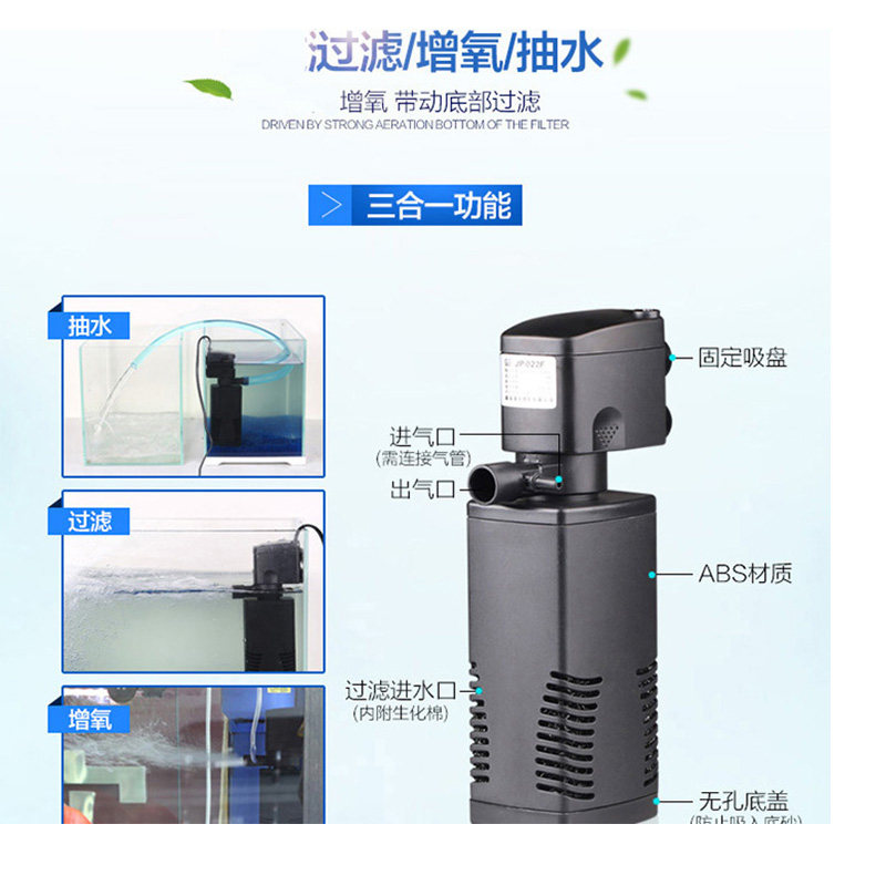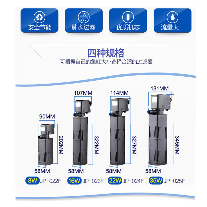 淘宝森森JP四合一多功能潜水过滤泵小型鱼缸内置过滤器水族净水器带棉