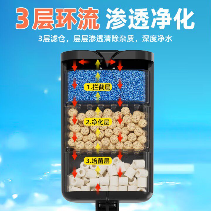淘宝疯狂水草小型鱼缸子瀑布形壁挂过滤器净水循环三合一超静音一体机