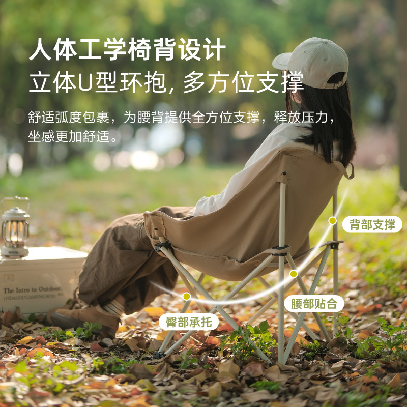 原始人户外折叠椅月亮椅露营折叠椅子折叠凳便携凳子钓鱼凳钓鱼椅