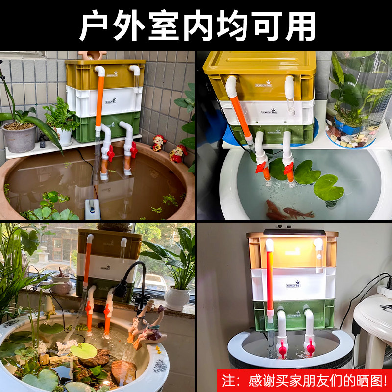 天猫森森陶瓷缸鱼缸周转箱过滤器 圆缸净水循环三合一龟滴流盒周转箱