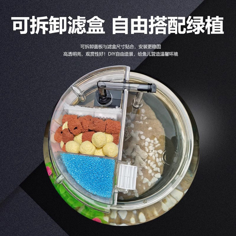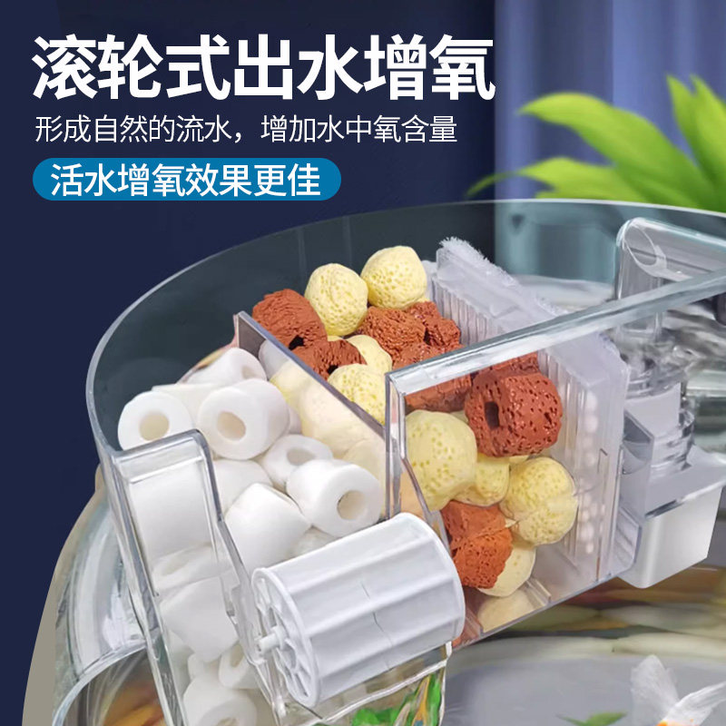 天猫圆形鱼缸过滤器圆鱼缸专用加氧净水过滤循环系统一体圆柱缸滴流盒