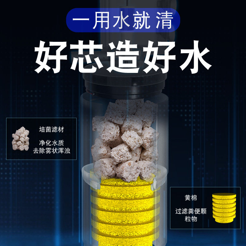 这款小型鱼缸过滤器系统专为小金鱼设计,集过滤、增氧、循环于一体,结构紧凑,适合陶瓷鱼盆或小型水族箱使用。内置静音水泵,有效抽吸水体并通过多层过滤棉、生化棉及陶瓷环进行物理与生物过滤,保持水质清澈。同时集成上置式氧气泵,持续释放细腻气泡,提升水中溶氧量,保障鱼儿健康呼吸。系统运行低噪音、功耗小,安装简便,无需复杂维护。整体设计兼顾美观与实用,既净化水质又增强观赏性,是小型鱼缸的理想选择,让养鱼更轻松、环境更清新。