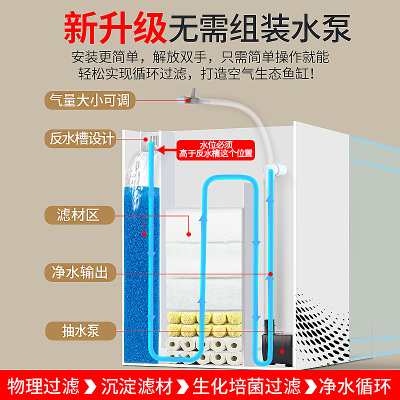 乌龟过滤器鱼缸过滤制氧一体机鱼缸循环水泵三合一低水位超静音