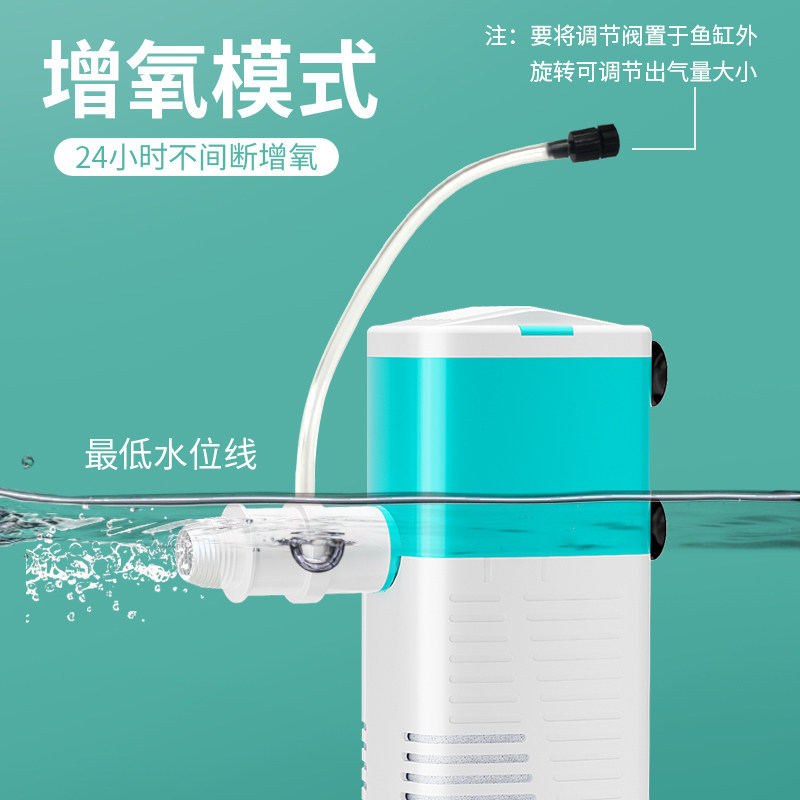 鱼缸过滤制氧一体机循环水泵净水三合一静音氧气泵吸便粪过滤器小
