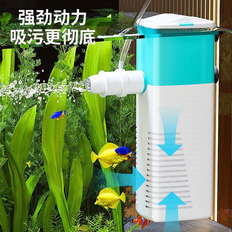 天鱼缸过滤器循环水泵制氧一体机三合一净水增氧小型瀑布式壁挂泵