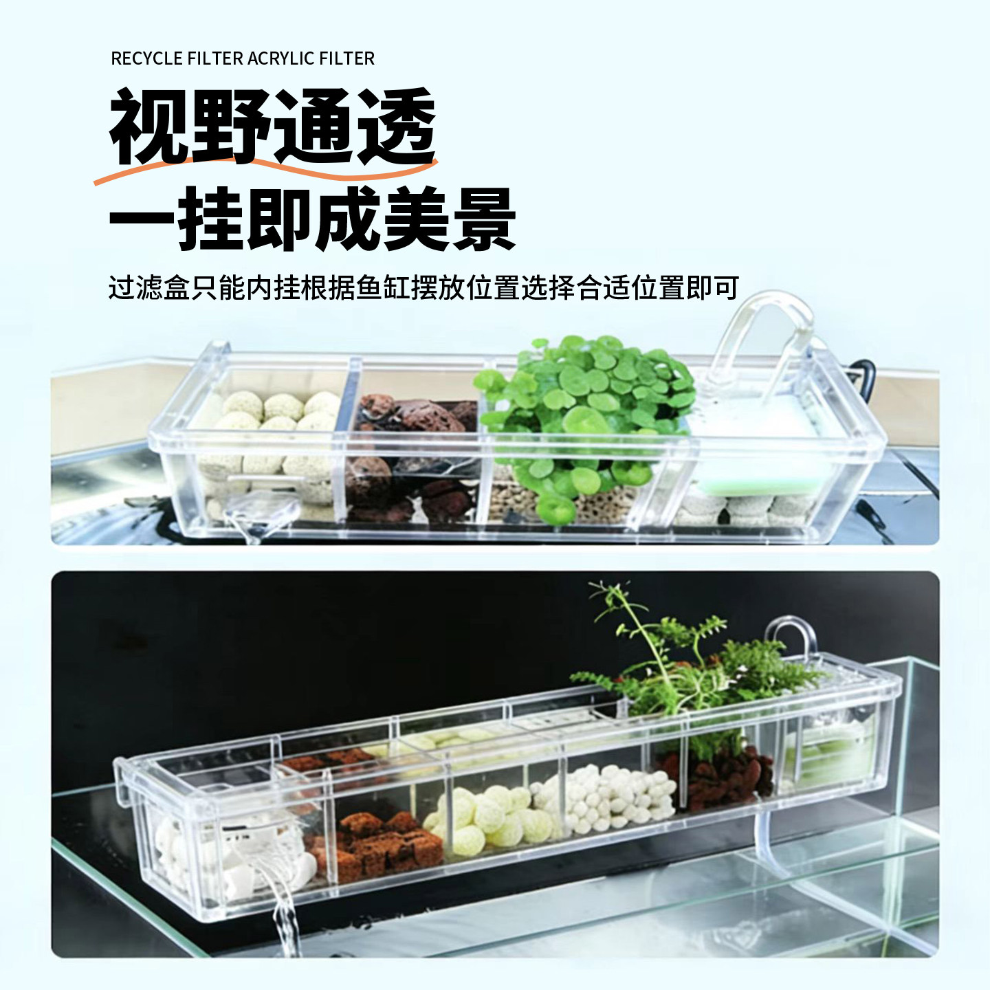 淘宝鱼缸过滤器循环净水三合一壁挂滴流盒制氧一体瀑布式亚克力过滤盒