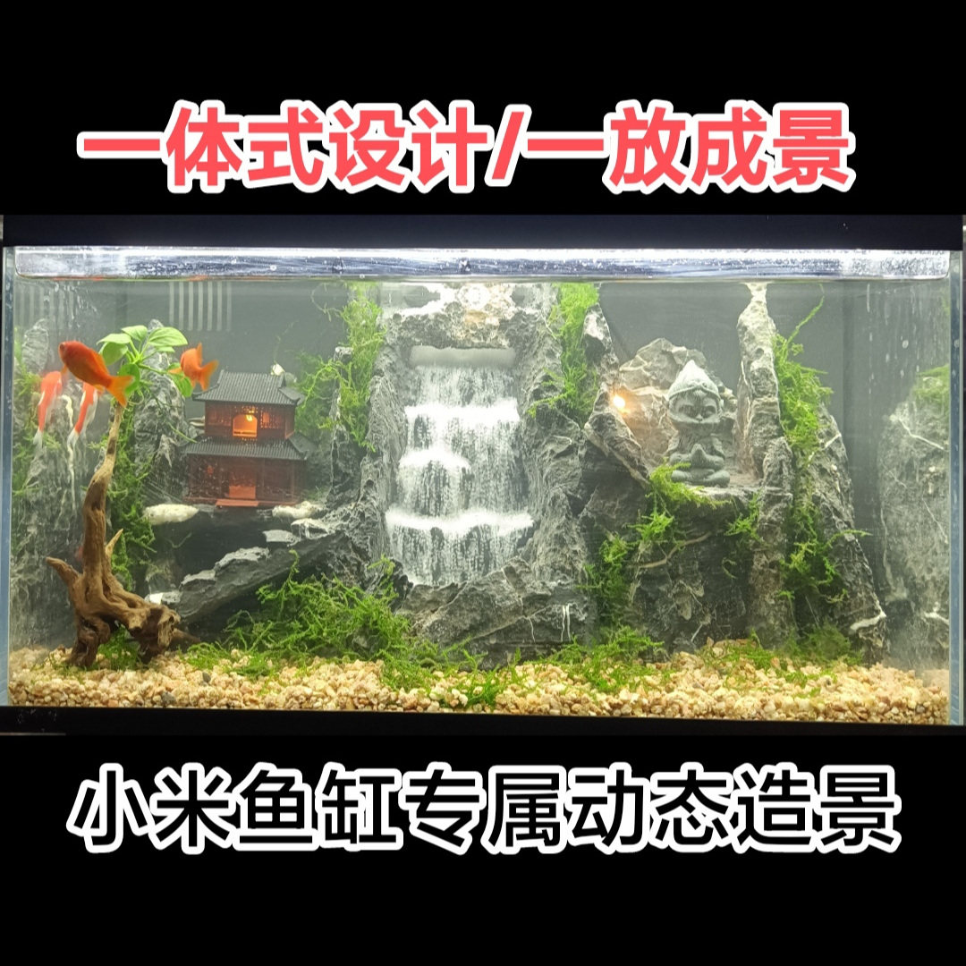淘适配小米家智能鱼缸造景装饰生态全套一体式懒人专用溪流石头套装