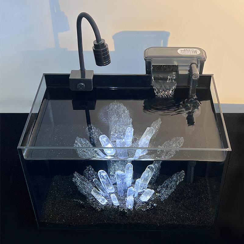 淘宝水晶造景鱼缸过滤循环整套桌面小型斗鱼高级暗黑风玻璃超白黑背缸