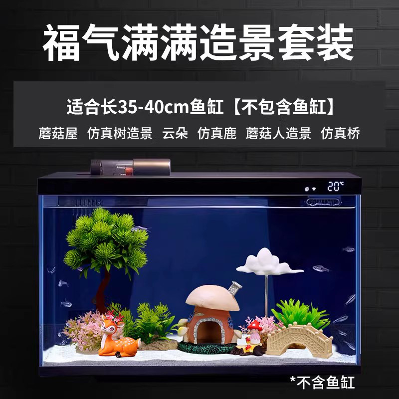 淘适配小米家智能鱼缸造景装饰生态全套一体式懒人专用溪流石头套装