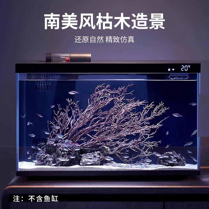 天猫适用小米米家智能鱼缸造景套装全套摆件南美风枯木生态鱼缸