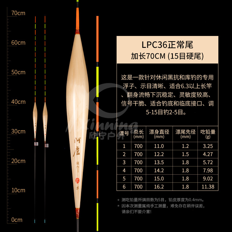 阿卢浮漂LPC36是一款专为黑坑及水库垂钓鲢鳙、鲤鱼设计的高灵敏度浮标。采用60cm加粗尾设计,视目清晰,即使在远距离或光线较弱环境下也能轻松观察信号。精选优质纳米材质,自重轻、吃铅比高,入水稳定,抗风浪性能优异。漂身经过精细打磨与防水处理,耐用性强,久用不变形。高灵敏度的设计能精准捕捉鱼口动作,尤其适合轻口鱼情。官方旗舰品质保障,是阿卢品牌专为进阶钓友打造的实战利器,助力您在复杂水域中轻松应对各种鱼情,提升中鱼率。