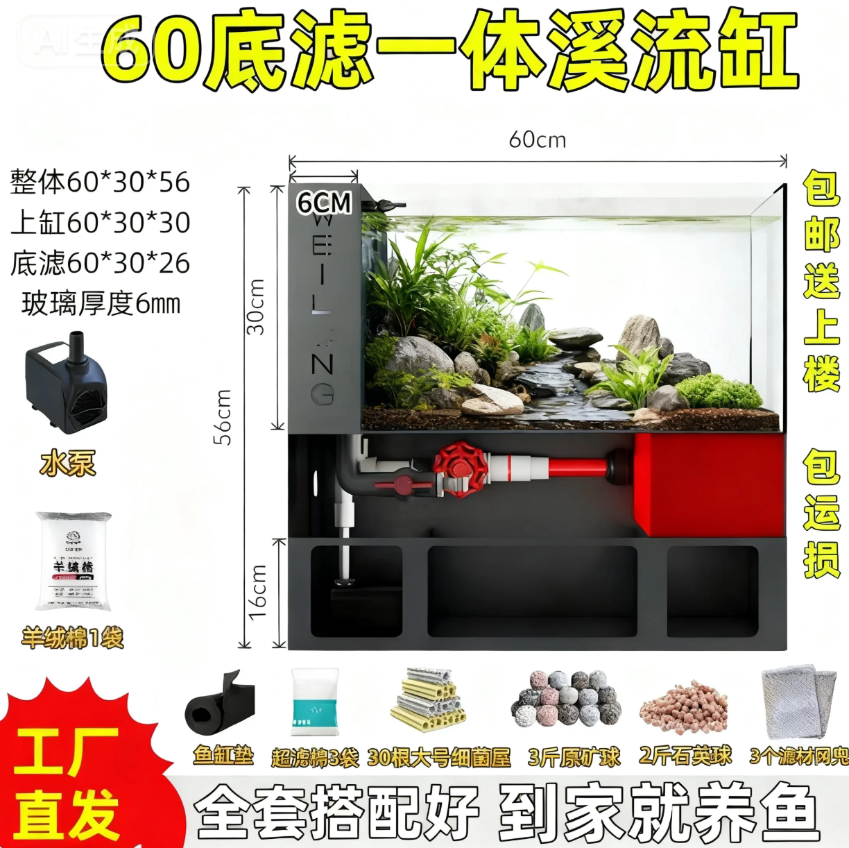 淘宝客厅小型鱼缸带过滤金鱼底滤一体水族箱桌面金晶超白玻璃网红鱼缸