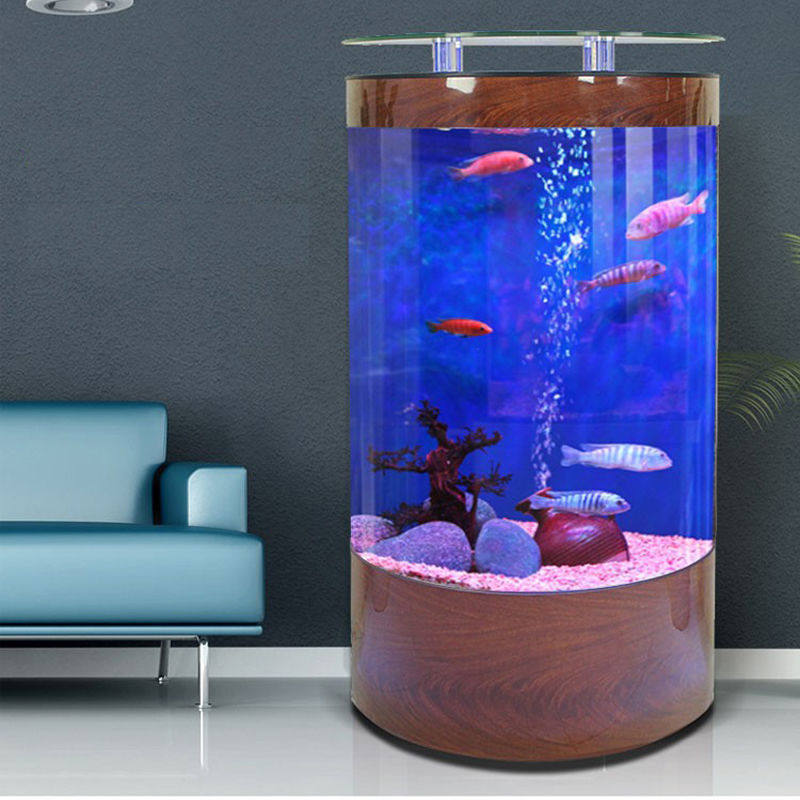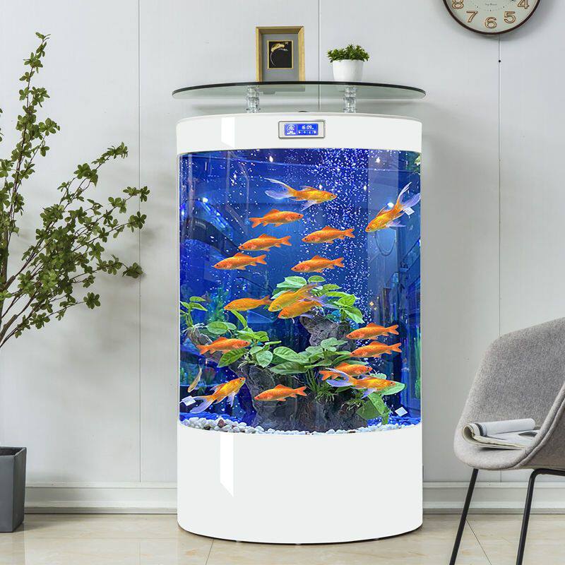 淘宝欧式高清半圆金鱼缸客厅玻璃中大型落地免换水懒人家用圆柱水族箱