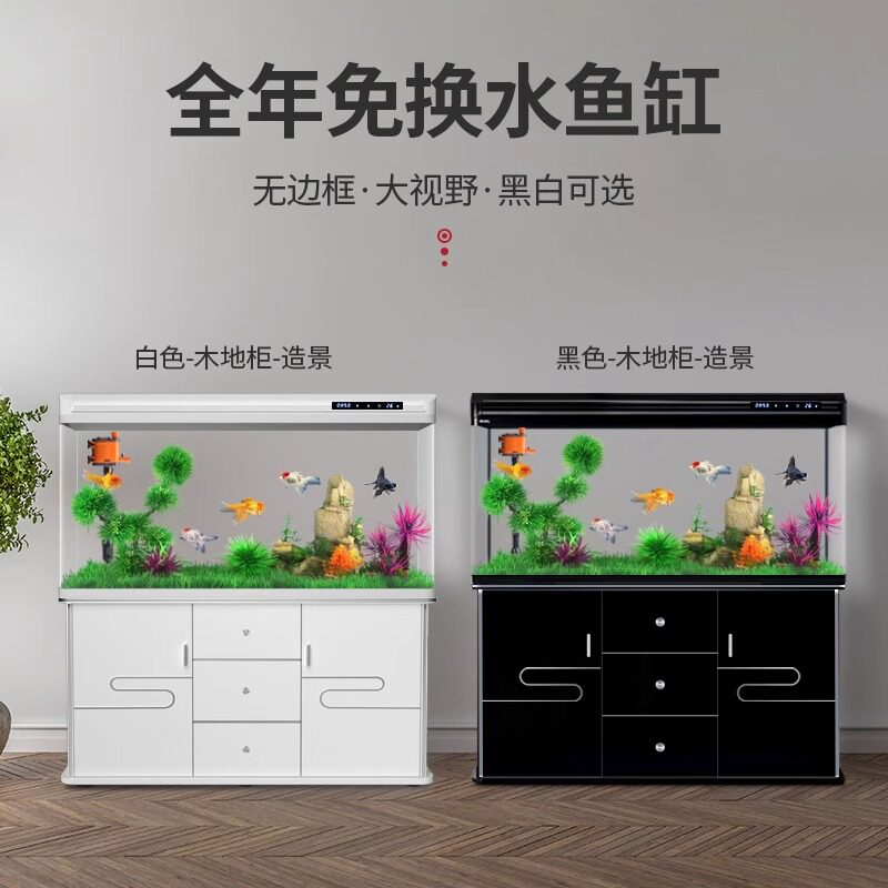 淘宝鱼缸柜客厅家用带柜落地玻璃水族箱生态免底滤柜子中型新款金鱼缸