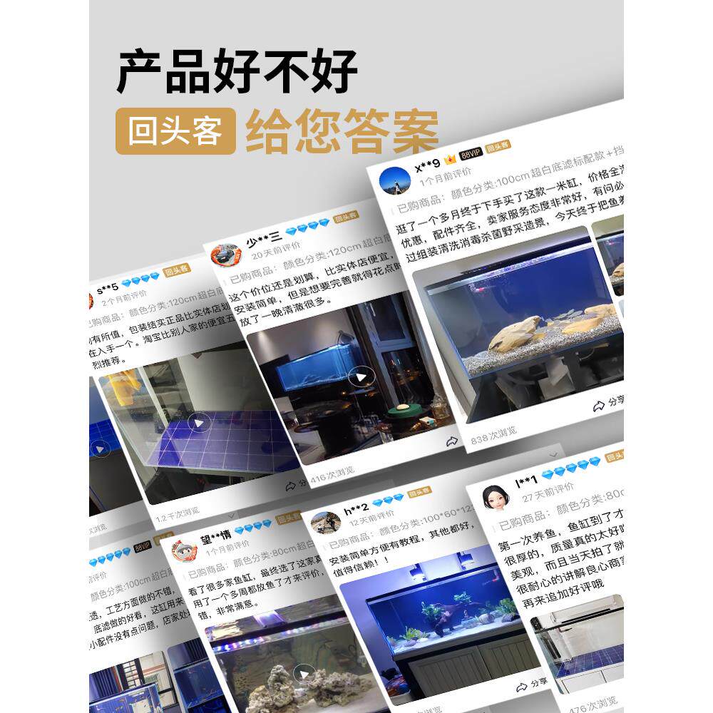 淘方缸海水缸背过滤方缸水刀切割黑玻鱼梳金晶超白桌面小鱼缸水族箱