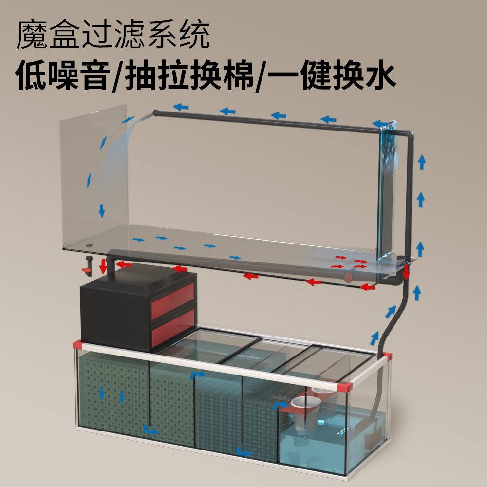 淘方缸海水缸背过滤方缸水刀切割黑玻鱼梳金晶超白桌面小鱼缸水族箱