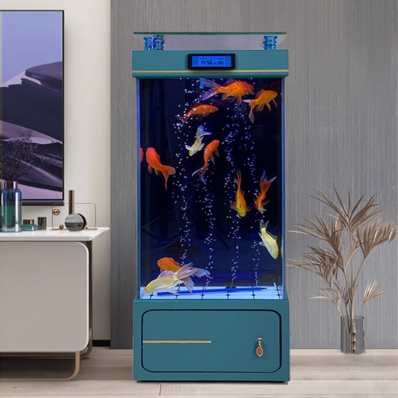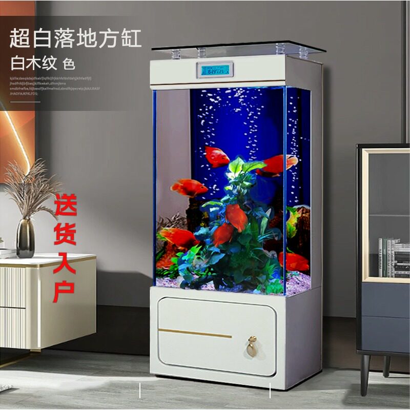 淘宝家用超白落地鱼缸客厅新款轻奢背滤靠墙全套免换水族箱立式金鱼缸