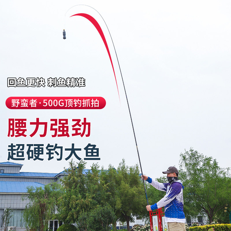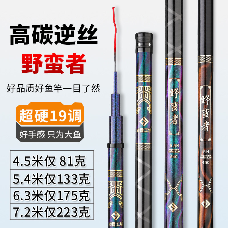天猫野蛮者鱼竿钓鱼竿19调超轻超硬手杆鲫鱼竿鲤品牌正品高碳鱼杆碳素