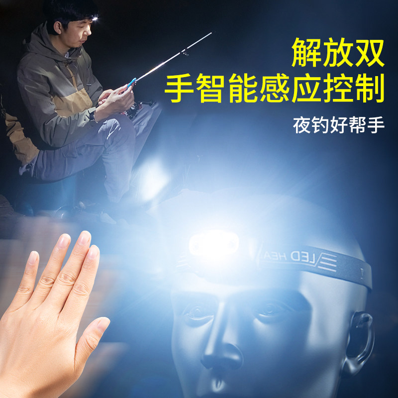 天钓鱼头灯2026新款超亮感应充电头戴式照明灯大容量续航登山户外灯