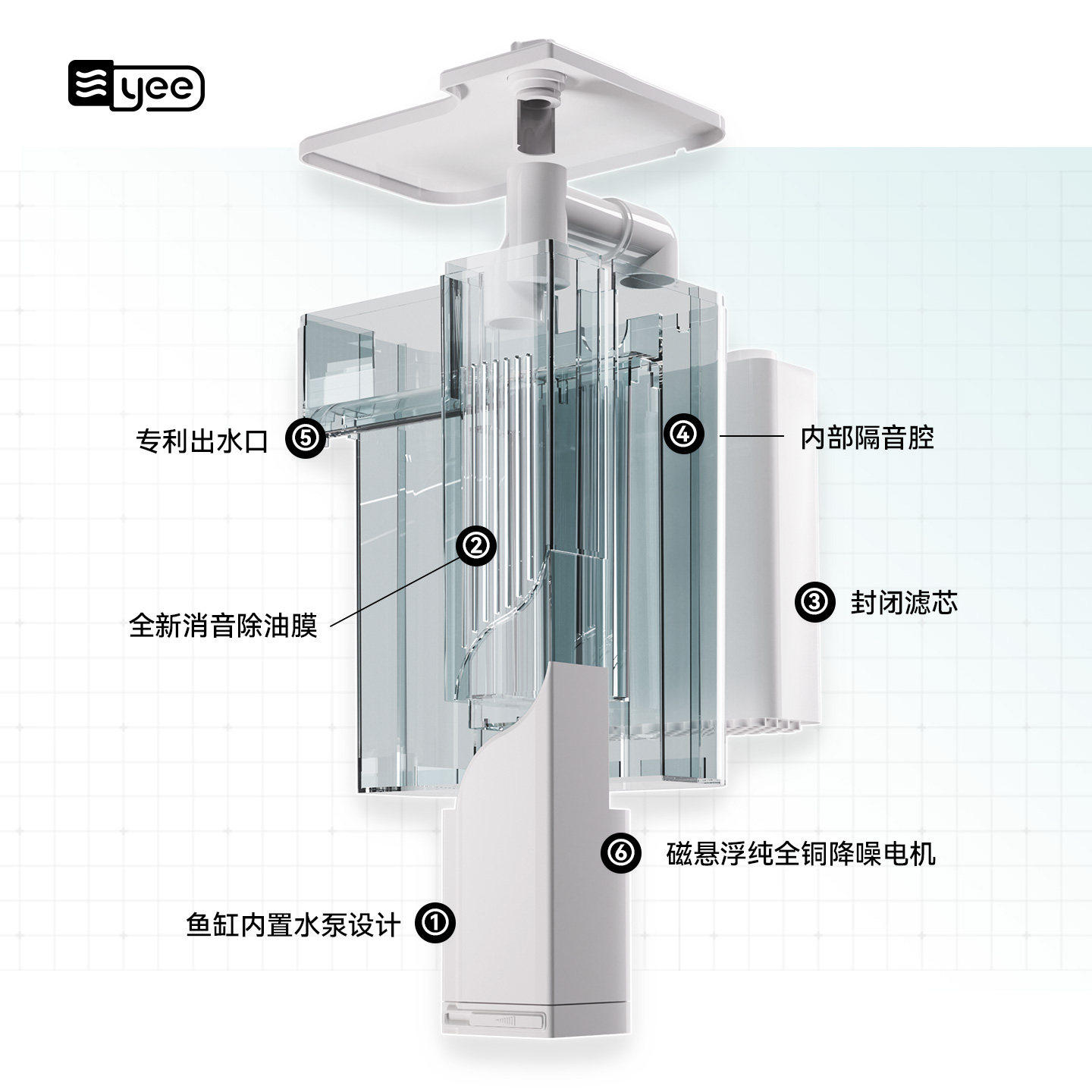 yee鱼缸过滤器制氧过滤一体机净水循环三合一小型瀑布壁挂过滤器
