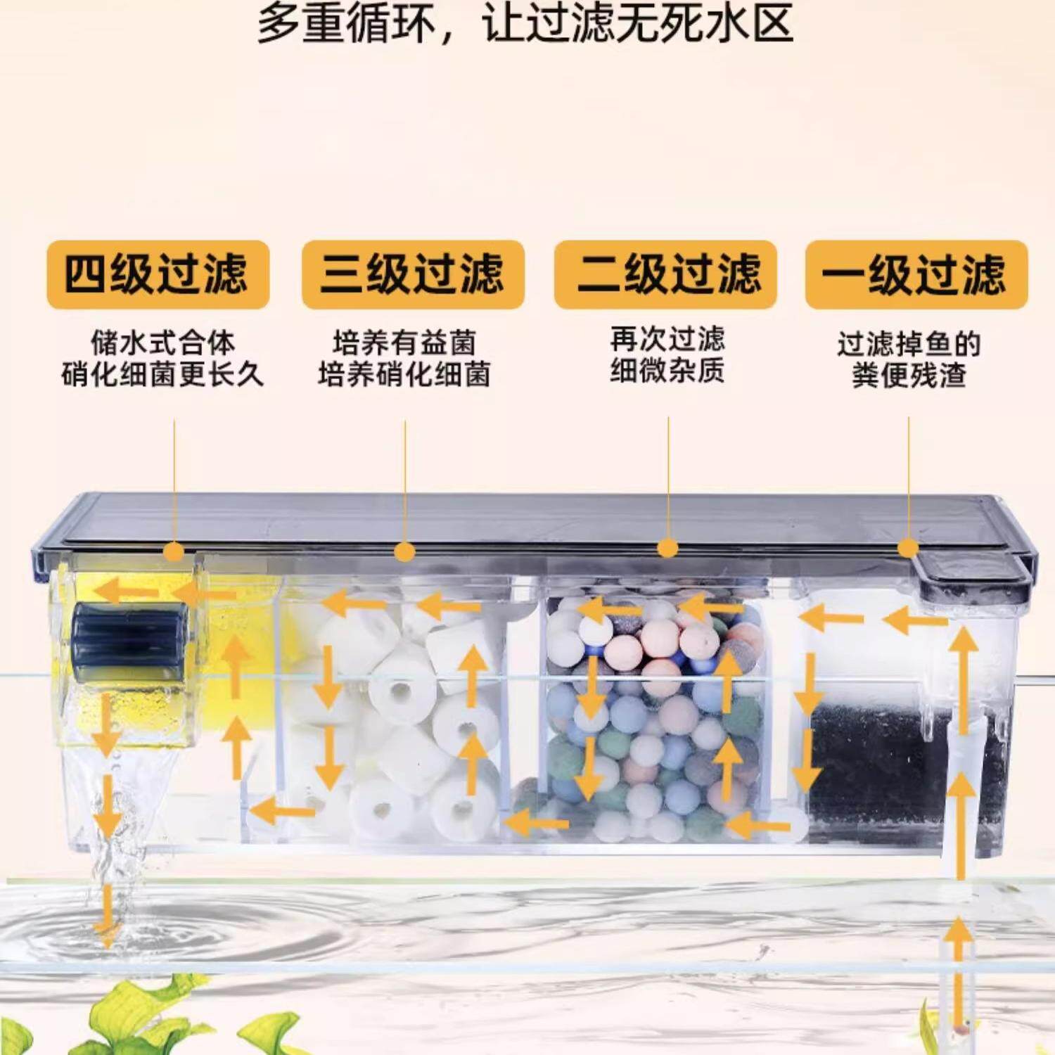 淘宝松宝小鱼缸过滤壁滴流盒顶部壁挂过滤制氧一体机龟缸过滤盒三合一