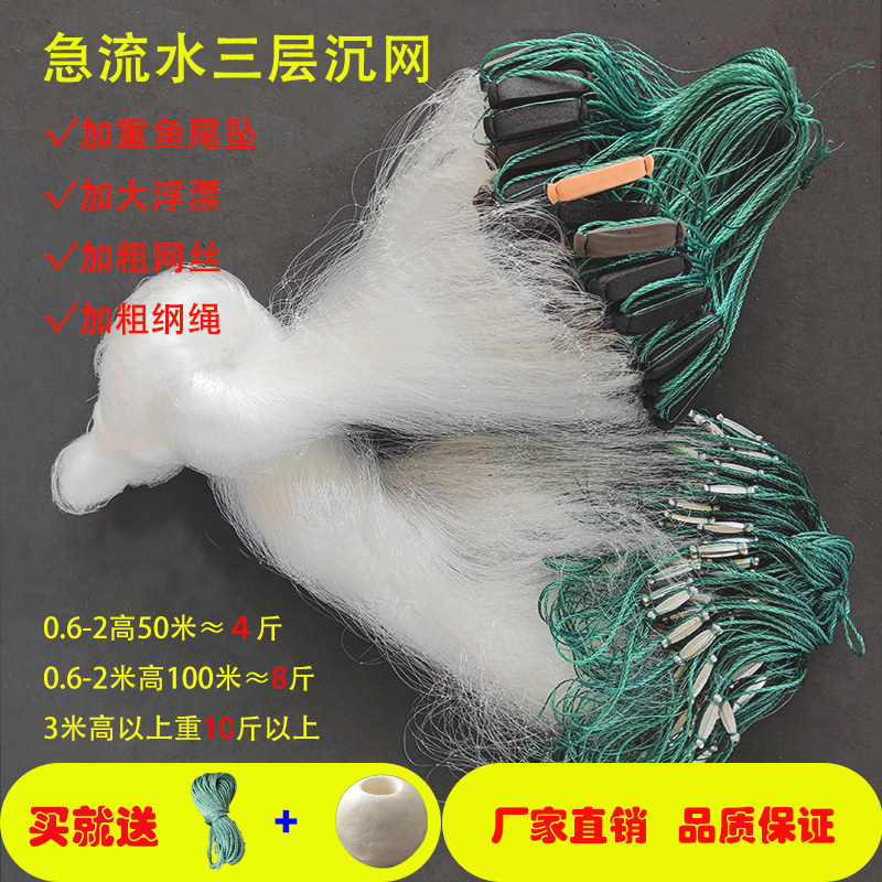 淘宝加重流水网三层网沉网鱼网粘网挂网捕鱼网急流急水网50米丝网渔网