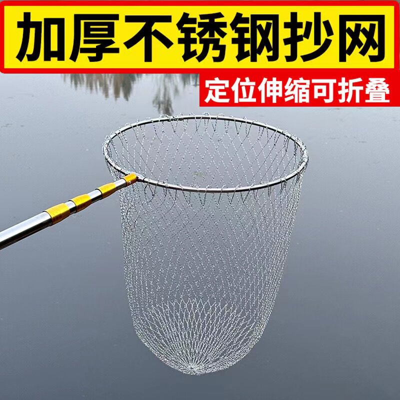 淘新款不锈钢抄网3米抄网竿捞鱼网伸缩杆网抄鱼抄网可折叠抄网头鱼