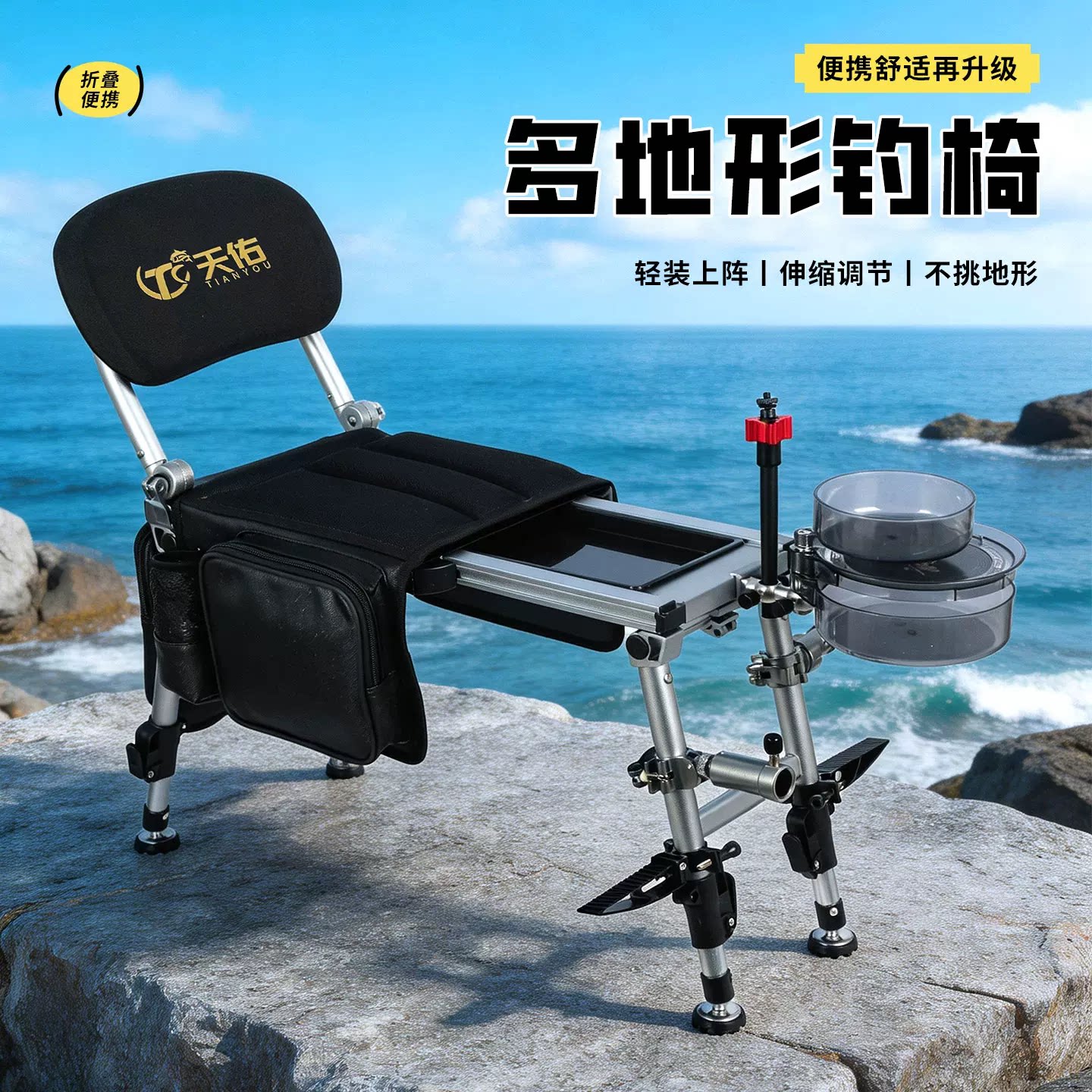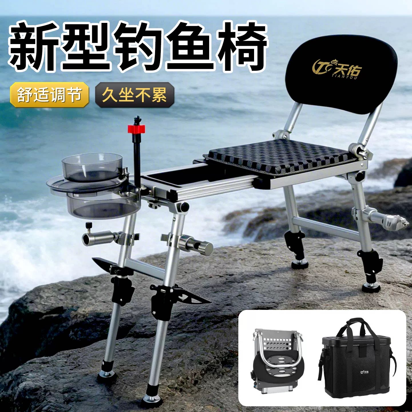 天佑钓椅全新推出“骑士椅”系列,专为野钓爱好者打造。采用高强度铝合金材质,结构稳固且重量轻盈,承重可达120公斤。创新折叠设计,收合后仅5公斤重,便携易携,轻松放入后备箱或肩背出行。座椅宽大舒适,配备透气网布,久坐不闷热;背部可调节角度,支持多档位倚靠,满足不同垂钓姿势需求。集成多功能配件:可拆卸置物袋、杯架、饵盘支架一应俱全,提升作钓效率。防滑脚垫适应泥地、砂石等多种地形,稳固安全。无论是湖库、溪流还是河边,天佑骑士椅都以卓越性能与人性化设计,成为钓友征战野外的得力伙伴。