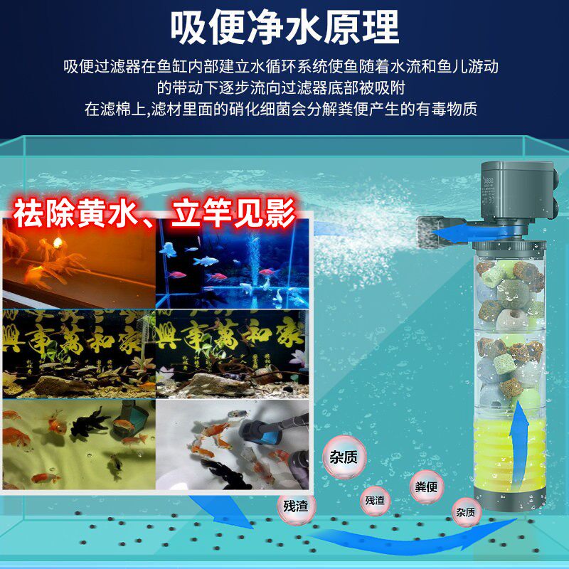淘宝鱼缸过滤器循环泵三合一免换水内置净水神器增氧圆形小型潜水水泵