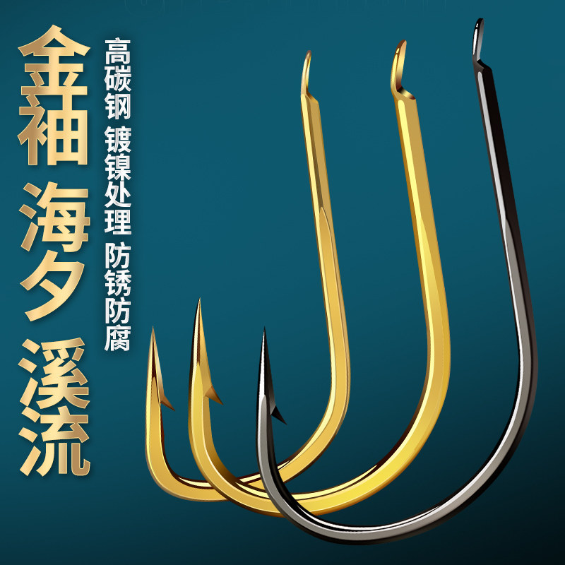 淘宝平打鱼钩金海夕金袖钩溪流散装超细条钩有无倒刺野钓钓鱼钩鲫鱼钩
